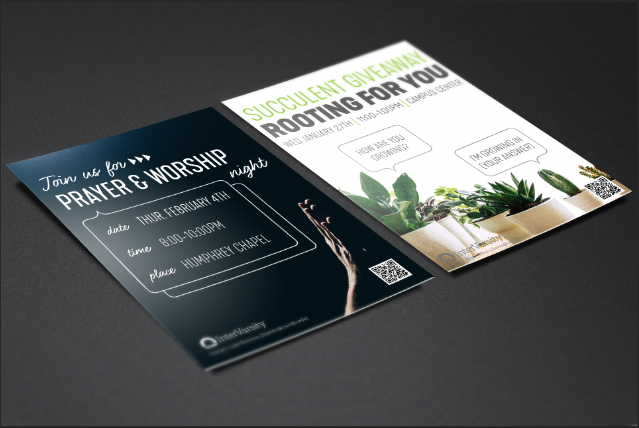 The design task was to create promotional posters for InterVarsity events and groups being hosted on the Carroll University Campus. A few of these events included Worship Night, Volunteering at Minooka Park, and Succulent Giveaway. Posters designed for groups included weekly Large Group gatherings and Prayer Group. Each poster was created while adhering to the InterVarsity National Brand Book guidelines and sent to staff for approval and suggestions.